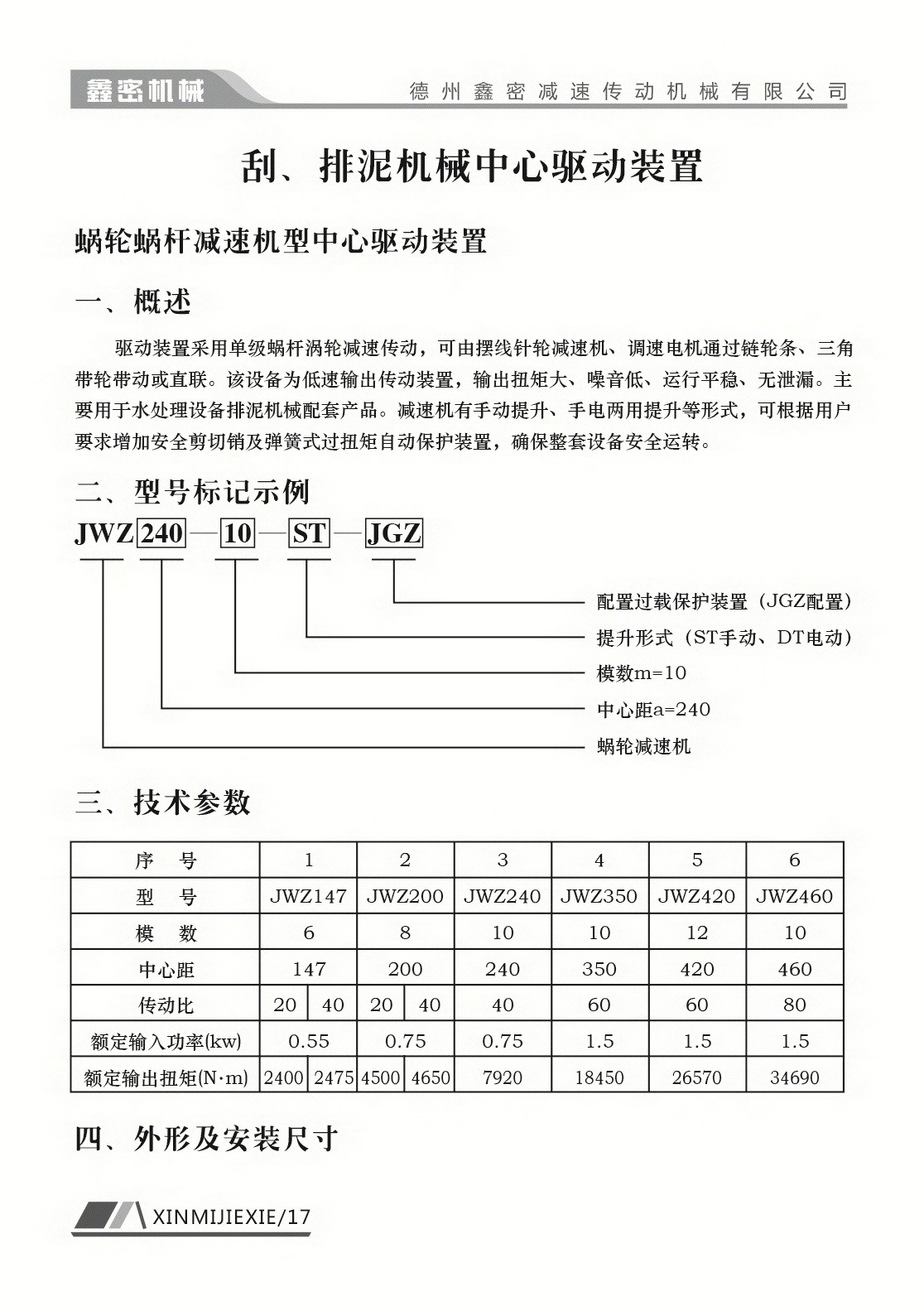 JWZ澄清池刮泥機專用蝸輪蝸桿減速機型號規(guī)格有JWZ147、JWZ200、JWZ240、JWZ350、JWZ420、JWZ460,JWZ672。根據(jù)澄清池大小選擇合適的蝸輪減速機。