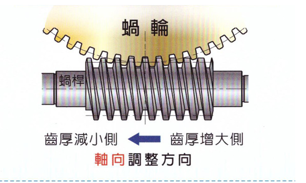 精密無間隙雙導(dǎo)程蝸輪蝸桿系統(tǒng)結(jié)構(gòu)是根據(jù)蝸輪蝸桿在正逆運(yùn)轉(zhuǎn)時(shí)的齒厚不同的變化來設(shè)計(jì)的,通過蝸桿的軸向移動(dòng),使蝸輪蝸桿間的齒隙連續(xù)發(fā)生變化,保持蝸輪蝸桿的正確位置的基礎(chǔ)上可調(diào)整后退距離,從而達(dá)到理想的齒隙削除。