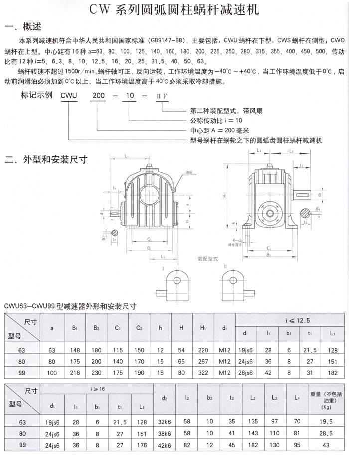 CW系列圓弧圓柱蝸桿減速器是按照國家標準生產。主要包括CWU、CWS、CWO三種裝配型式。適用于冶金、礦山、運輸、水泥、建筑、化工、紡織輕工、新能源等行業的機械傳動領域。